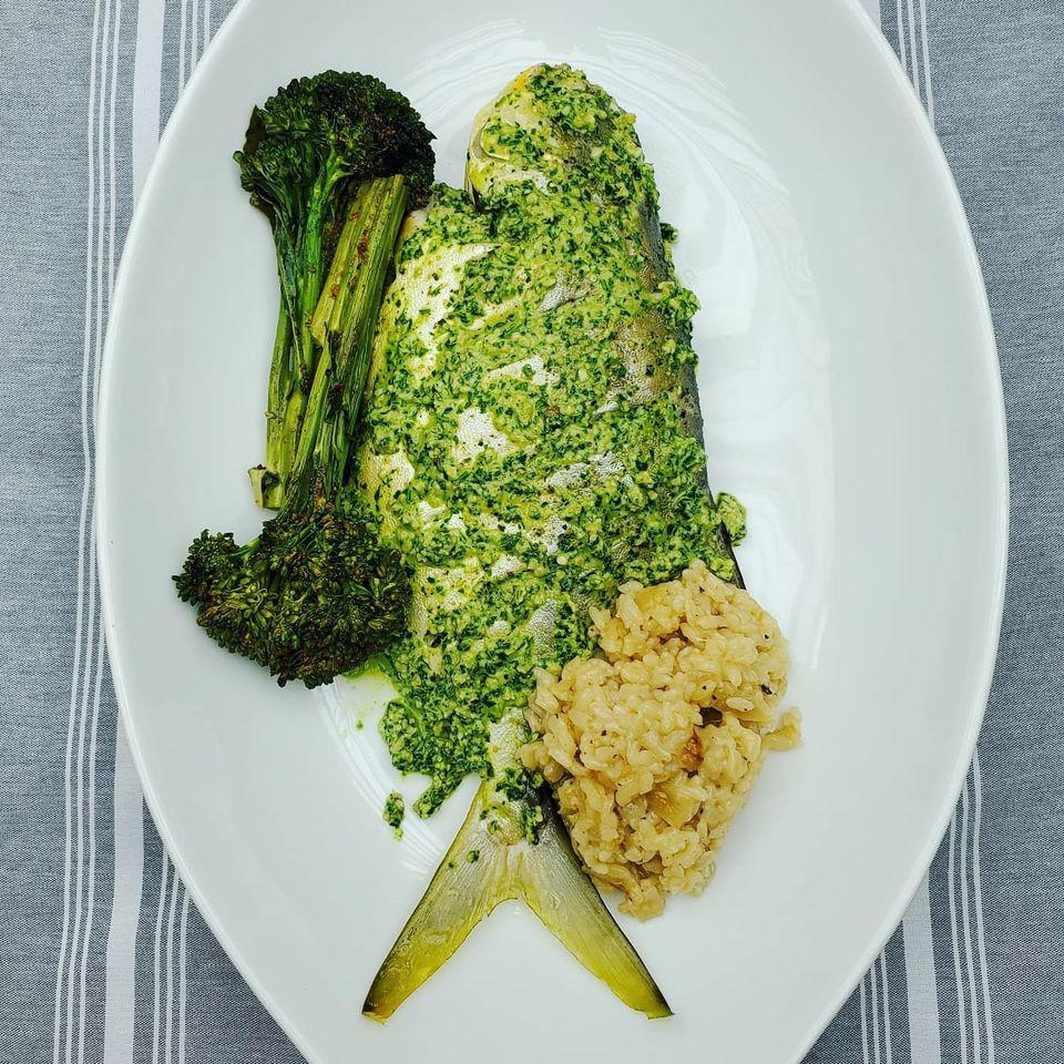 roasted pesto pompano with risotto