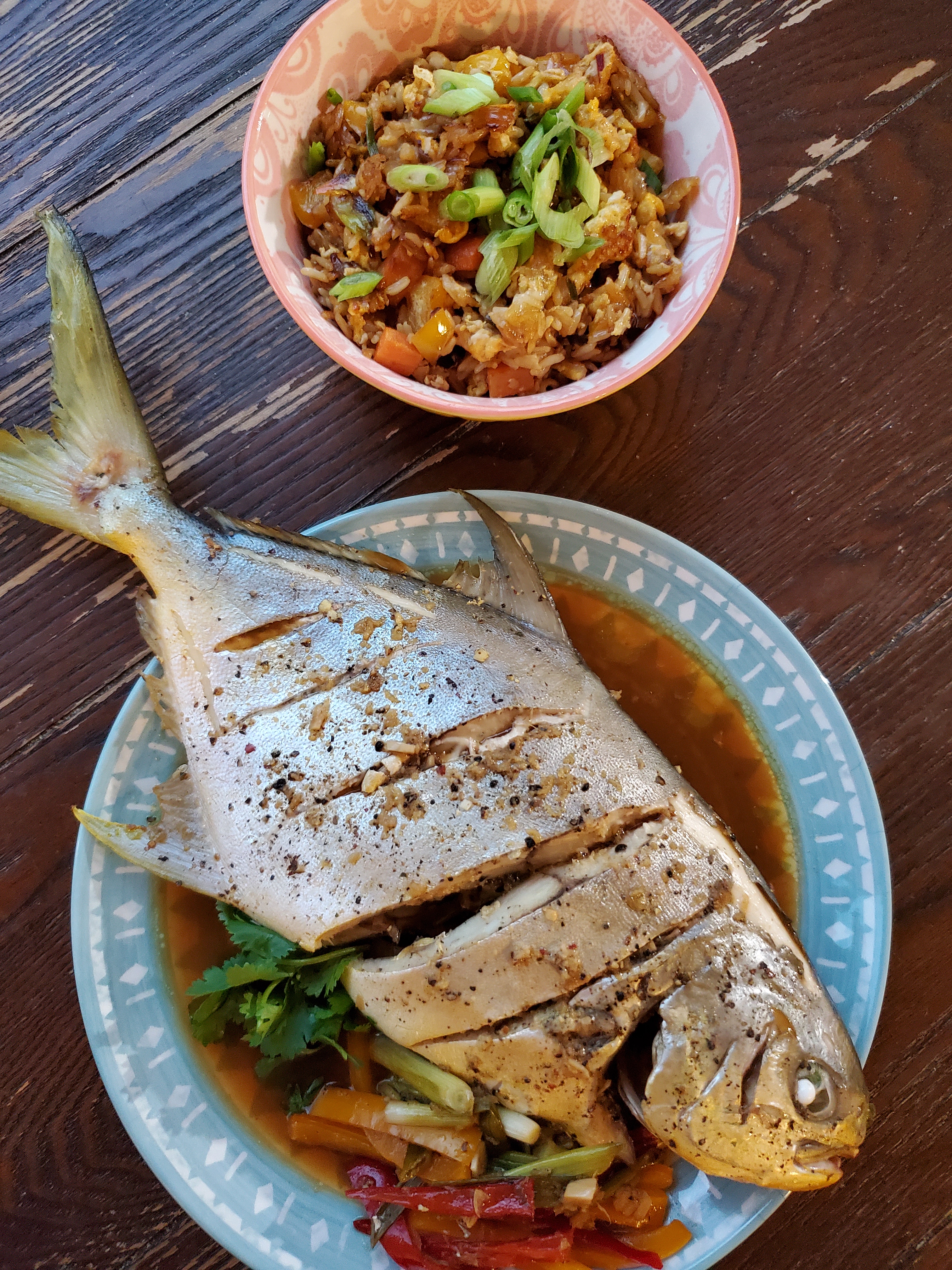 asian inspired pompano with fried rice