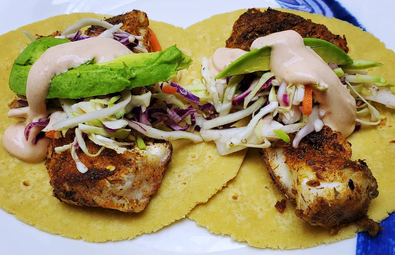blackened sheepshead tacos